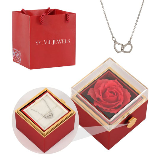 Cofre Pasión Rosa Eterna con Collar Grabado